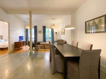 The access to the apartment is by the entrance hall, immediately you enter in an open space where you find the living room, where you can read, watch TV or relax on the three-seater sofa or the big armchair. The kitchen area is open to the living room, completely new.There are two bedrooms with two double beds-